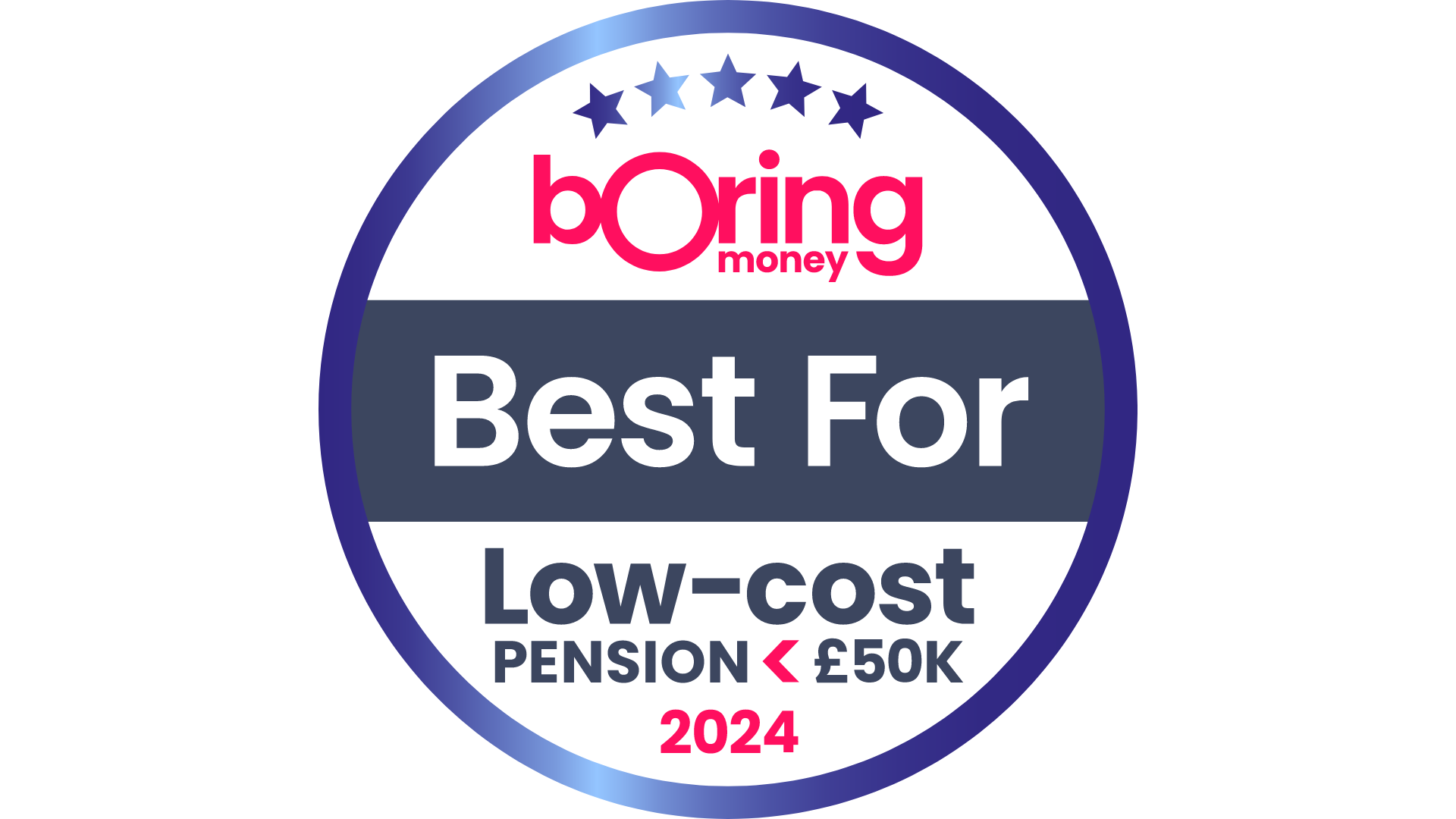 The Boring Money Best For Low-cost Pension <£50k award is designed to recognise the best Self-Invested Personal Pension (SIPP) providers in the UK for accounts of £50,000 or less.