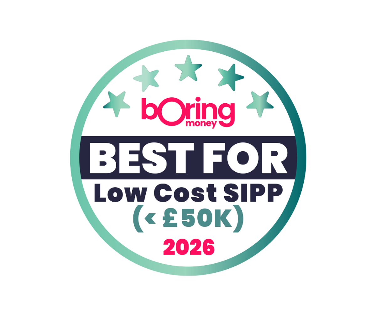 HomeBest For Low-Cost Pension For Investments Under £50k Award 2026Unlock the winnersJoin Boring Money for free to find out who won this year's Best Buy award!SIGN UPI would like to hear from you about products, events, general marketing and other things from Boring Money – including personalised content and ads - but please try not to make them as boring as everything else in finance!Already have an account? LoginJoin our Research PanelJoin thousands of people earning cash or rewards for giving their honest feedback. Click here to become a member of the Boring Money Research Panel today!Click here to get started!Contact usHave a question about money that we haven't answered? Need help making better money choices?Email our team today.You may also like... ISA vs Pension: Which is best to save for retirement?By Boring Money 17 Oct, 2025Read More Pension Transfers: Costs, Timings & How To Do ItBy Boring Money 17 Oct, 2025Read More Best Investment Trusts to Have in a PensionBy Boring Money 25 Sep, 2025Read More